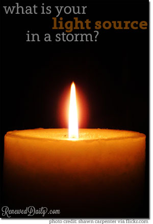 As I sat in the storm, I realized that I would not want to depend on electric lights that would be non-existent if a storm knocked out the power. I’m often like that. I depend on outside sources for my needs, look elsewhere for motivation or strength. When a big storm comes and takes that power source off the table, I’m left in the dark. I want to be a light that doesn’t get it’s power from an unreliable outside source.